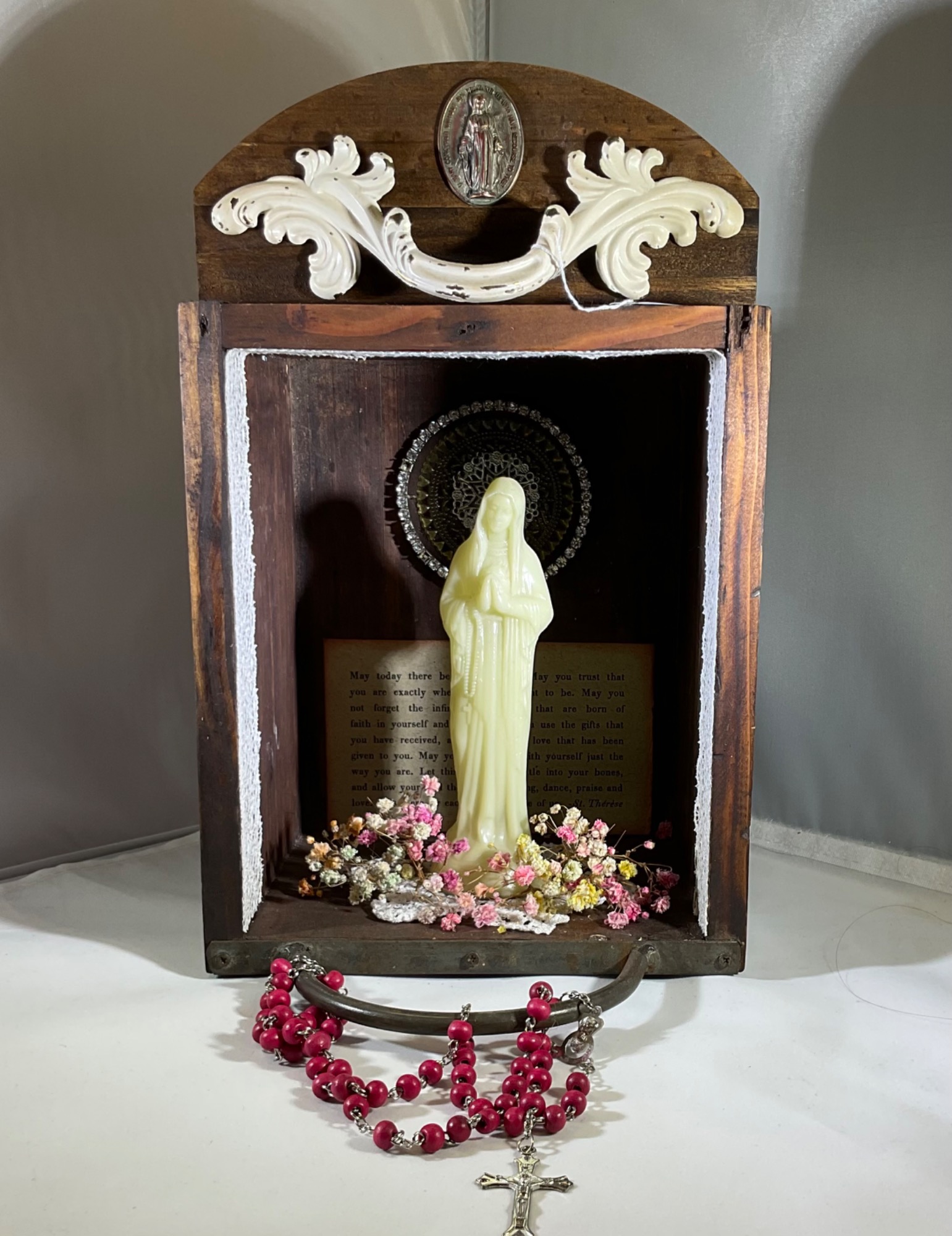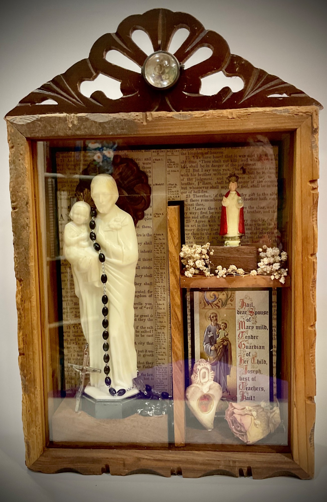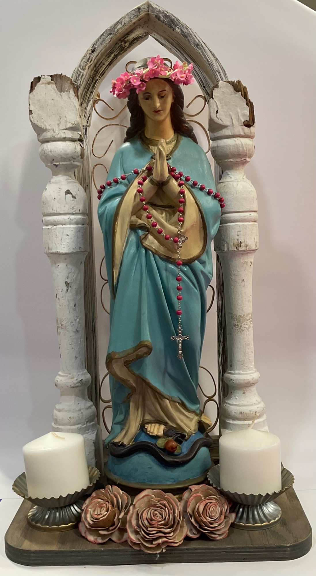 The unique pieces of statue and form united together create a response of beauty and awe. Each piece is an extraordinary assemblage of worship and prayer devoted to God the Father, Jesus, the Holy Spirit, Blessed Mother and the Saints.